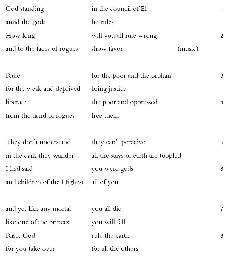 It is, however, passionately reflective about the knife-edge between life and death and what that edge means. “Knife-edge” is not the exact term for this psalm, however. Life and death are separated, rather, by breathing (4, 7, 10), by hearing (1, 7, 8), by being visible as opposed to hidden (3, 7, 9), and they are separated by the horizontal boundary of the soil, the “ground” (3, 6, 10). The word “ground” works best for ’erets in this psalm, indicating the physical location of bodies that die, but it loses (can you hear me sigh?) the culturally specific and universally resonant implications of the term. The psalm’s most abstract theological reflection about the meaning of death and dying takes place in its opening and closing verses, where appeals to “your justice” (1, 11) are paired first with “your fidelity” (1), then with “your care” (12). In each case, these traits are instrumental, objects of the prefixed preposition b-, as in the awkward line “with your fidelity | answer me / with your justice” (1). The verse length and syntax are strange, but their felt thought is even more curious. If the causality is complex—that is, “because you are faithful, answer me justly”—how sincerely are we to take the pleading? Is the speaker asking for loyalty and justice, but justice without a trial, justice that is not typical justice? Are life and death just? Is it loyalty or fairness or lovingkindness that should make the Lord “end my enemies / and finish off | all who distress my throat” (12) or give life to the dead or dying (11)? Why should the Lord make those die and these live? These are good questions.